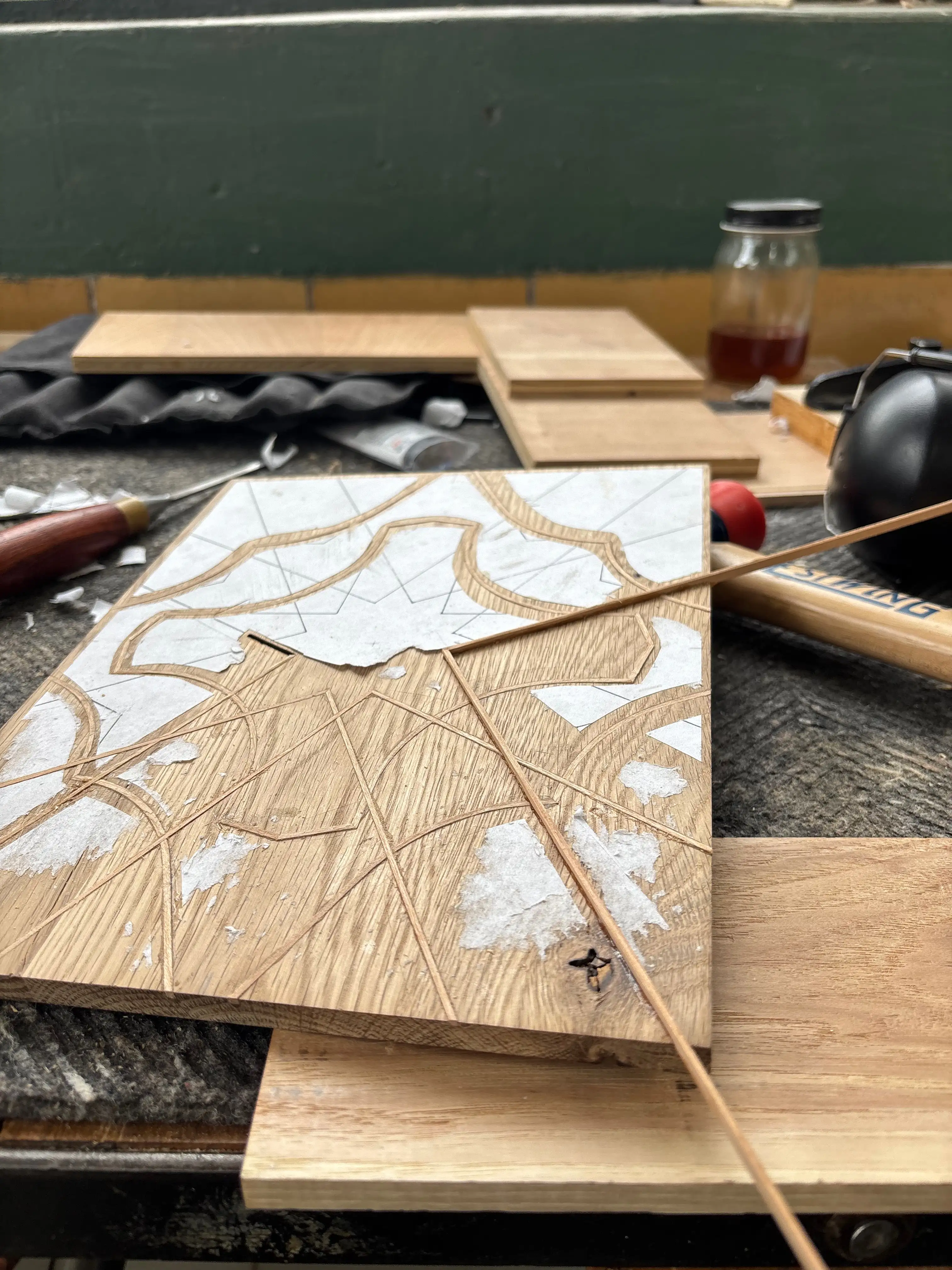 A few weeks before starting on the wall cabinet, I found the geometric design described in a Guardian article and I knew I wanted to use it for something. When this project came along, I knew I'd found the right thing.