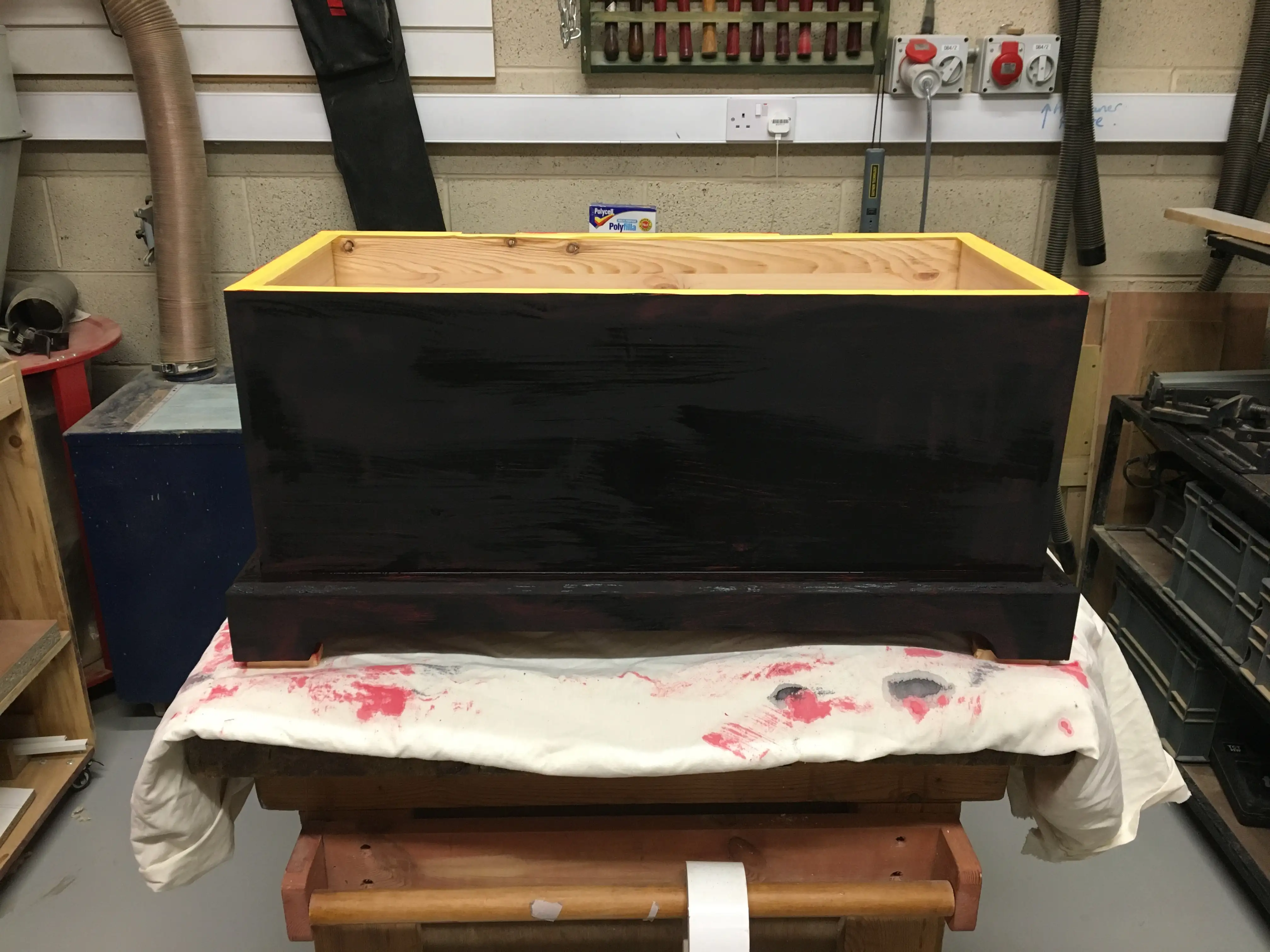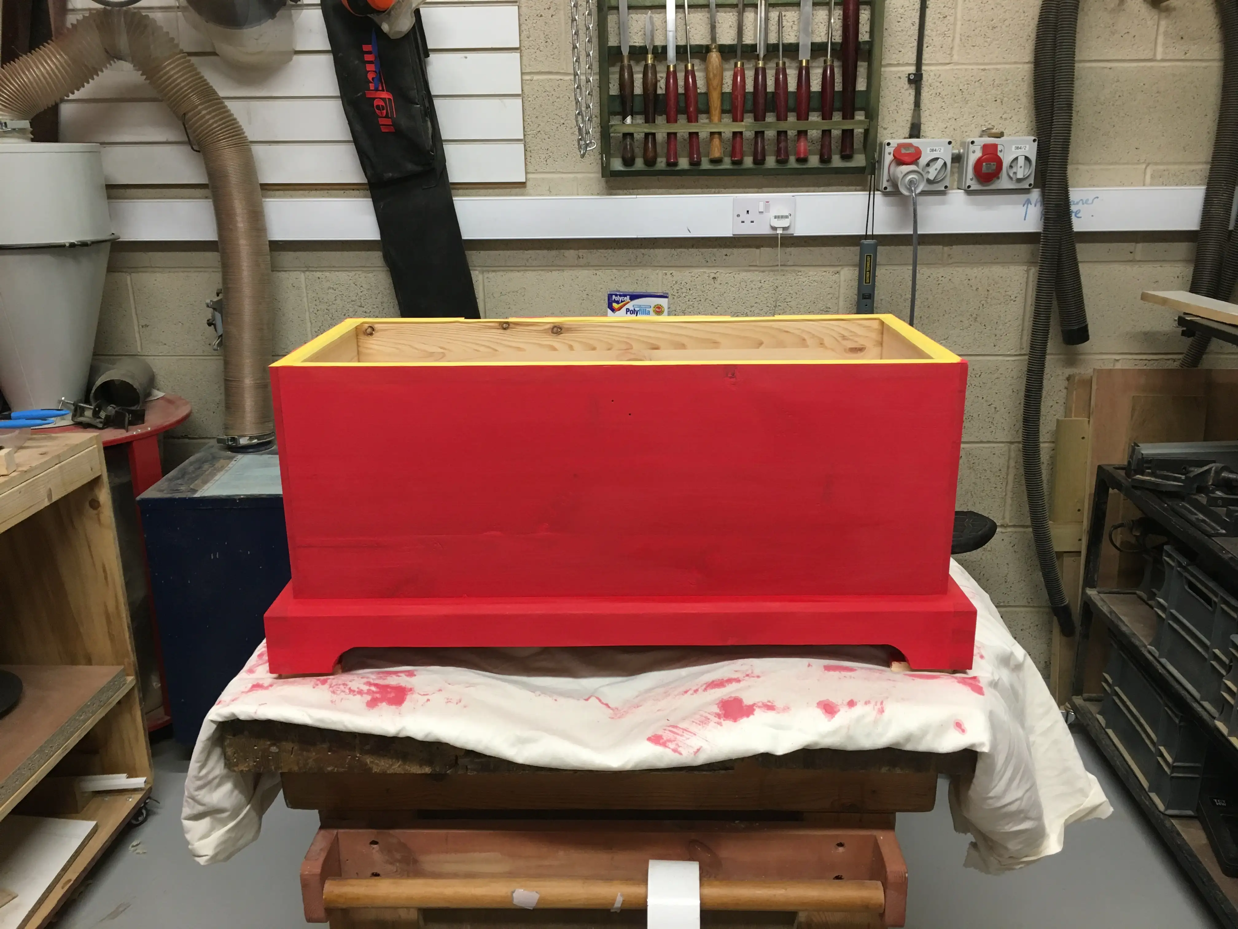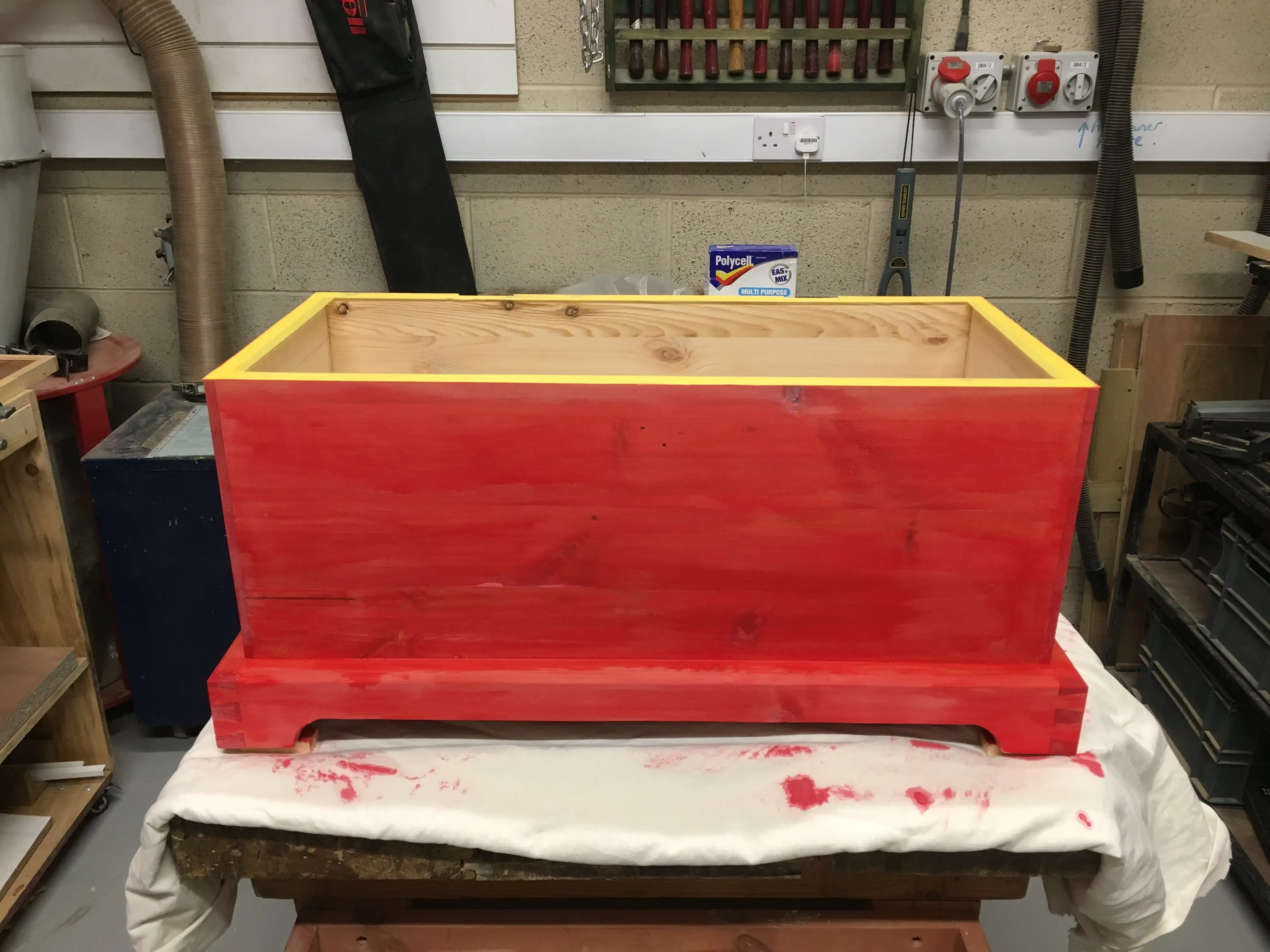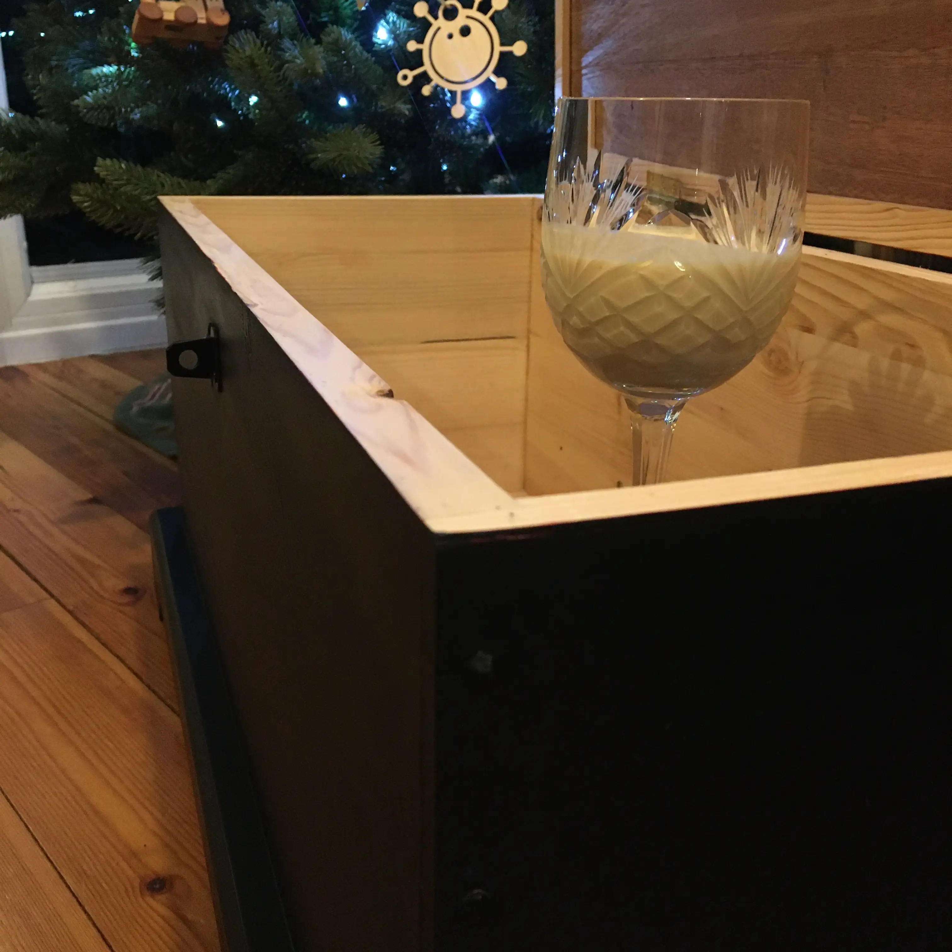 This was my first tool chest. It is made entirely from reclaimed wood: pieces of pallets that I came by, some planks left in the maker-space I used, a resawn window sill. One of the things that I always remember and love about this chest is the smell of pine whenever I opened it.